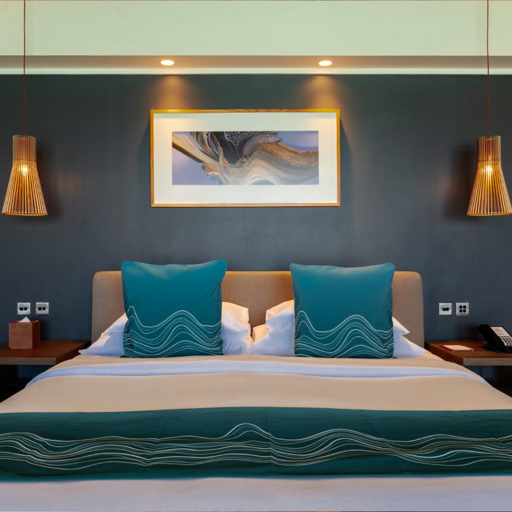 Bedroom: The bedroom is luxuriously appointed with a king-sized bed, providing a serene ambience